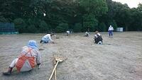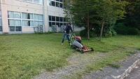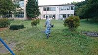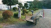 お休みの日の早朝に関わらず、地域・保護者の皆様にお集まりいただき、除草や下草刈り、樹木の剪定などをしていただきました。