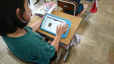タブレットを使って、自分の考えを友達に説明することもできました。