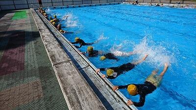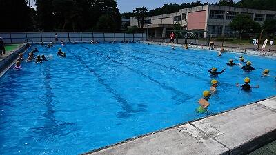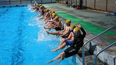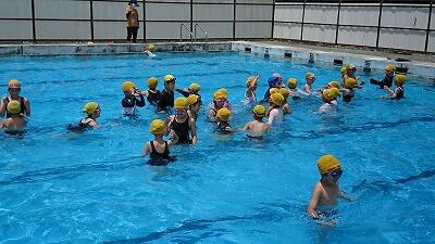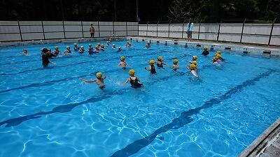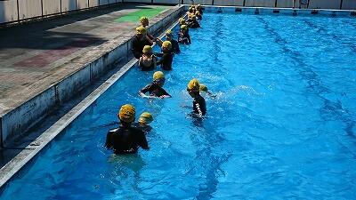 プールの壁面沿いを回って、流れるプールを作ることもしました。