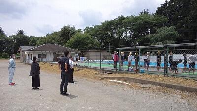 1年生と2年生が向かい合い、真ん中まで歩いて行き、じゃんけんをして勝ったら戻ります。