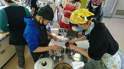 グループで協力しながら、自分たちで計画した手順で調理していきました。
