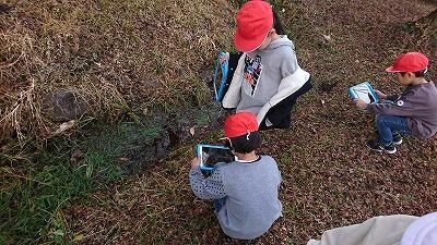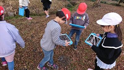 どこに冬が来たのか、タブレットを持って校内を探索しました。