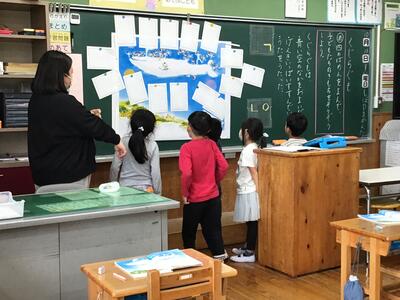 5時間目に1年生の国語の研究授業を行いました。「くじらぐも」の学習です。