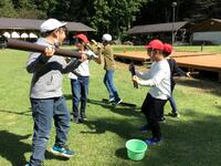 仲間作りゲームの様子です。「協力・知恵・コミュニケーション」を使って、成功をめざしました。