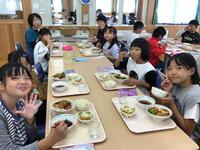校内読書月間の取組の1つとして、お話給食(読み聞かせ)を行いました。「おとうふ2ちょう」というお話でした。お母さんがおつかいを頼んだ「お豆腐2丁」が最後には13丁も集まってしまったというお話です。なぜ13丁も集まってしまったのか…。子供たちは興味津々に聴き入っていました。