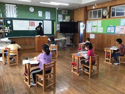 5・6年生のいない学校はやっぱりみんな寂しそうです。それでも、1〜4年生はしっかり学習に取り組んでいました。