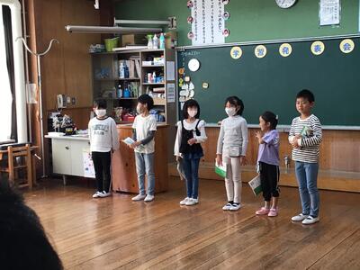 音読発表では、一語一語を丁寧にはきはきと発音し、台詞を工夫して伝えることができました。