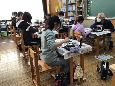 今年度も金子先生に出前書道教室を行なっていただきました。文字の書き方を一字一字丁寧に教えていただいた後、「何かひとつでもこだわって仕上げよう」を目当てに練習に励みました。子供たちは集中して取り組み、1時間があっという間に過ぎていきました。金子先生大変ありがとうございました。