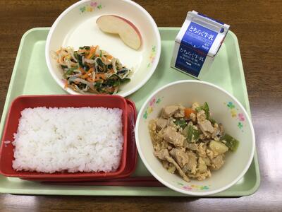 ★ご飯 牛乳 親子煮 和風あえ りんご★