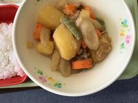 今日は七夕献立です。星型のハンバーグやお星様の入ったゼリーや星に見えるオクラが入った汁ものが出されました。