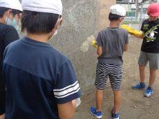 今回の塗り替えでは、子どもたちがアイディアを出し、的当て台だとわかるような図柄になる予定です。本校児童の投げる力が弱いことから、塗り替えが終わったらどんどん活用させていただきたいと思います。