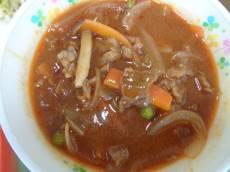 今日の給食は、県産和牛を使ったハッシュドビーフです。無償で牛肉を提供していただきました。通常よりたくさん牛肉が入っています。献立はご飯・牛乳・ハッシュドビーフ・ツナサラダ・オレンジです。