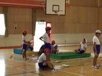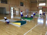3〜6年生の合同体育の時間をのぞくと、マット運動を行なっていました。開脚前転、開脚後転、伸膝後転など難度の高い技にチャレンジしています。ペアやグルーブの仲間たちと手のつき方や回り方のこつを考えたり、確認しながら練習に励んでいました。上手に回れるようになったかな。