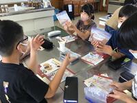 給食時に出るゴミを集める袋を作成中です。