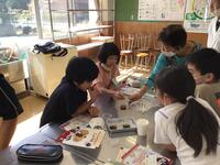 6時間目はクラブ活動でした。今日はスライムを作っています。上級生が下級生のサポートをしながら活動していました。液体がだんだん固まっていくと、歓声があがっていました。