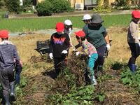 サンタイムに1・2年生が合流し、芋掘り開始です。今年は暑さのせいか痩せた芋が多く、例年のような収穫量にはなりませんでしたが、子供たちは生き生きと楽しそうに活動していました。