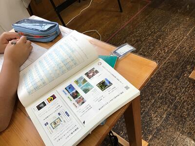 3・4年生は書写の時間でした。手本を見ながら、美しい文字の書き方を練習しています。しっかり課題に向き合っています。