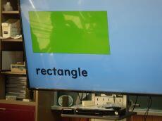 色と形を一緒に考え英語で言ってみます。ALTの話をよく聞いて答えていました。