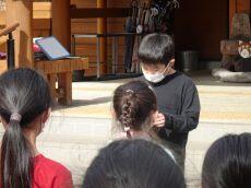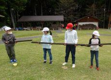 自然体験交流センターに到着し、入所式を行いました。司会進行は本校の児童です。センターの皆さんにあいさつをして、楡木小学校の児童と一緒にゲームをして仲良くなるきっかけを作りました。