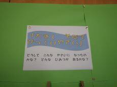 2年生のかわいい作品が掲示されています。「大きくそだて びっくりやさい」です。野菜の車や野菜の家でしょうか?想像力が素晴らしいです。