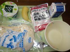 温めなくてもおいしく食べられるカレーを器に入れて、ナンにつけて食べました。バナナ半分と大きなアロエヨーグルトが出されました。
