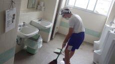 清掃の様子です。少ない人数で掃除しているので一人当たりの担当面積が広いです。一生懸命やらないときれいになりません。責任を持って頑張っています。