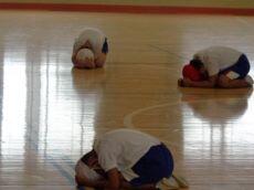 1・2年生の体育の授業の様子です。ダンゴムシや、ライオンなど、生き物になったつもりで自由に体を動かす表現運動を行っていました。