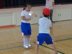 1・2年生の体育はケンケンパー遊びを行っていました。1年生は片足でケンケンは、両足で跳んでしまい、何度もやり直して挑戦していました。
