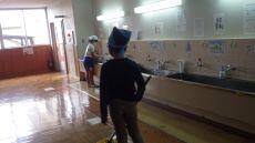 清掃の様子です。少ない人数で掃除しているので一人当たりの担当面積が広いです。一生懸命やらないときれいになりません。責任を持って頑張っています。