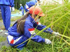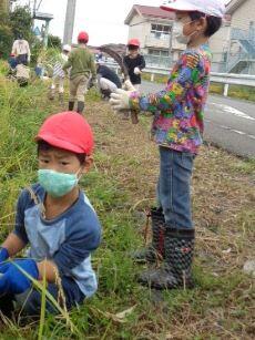 3・4年生が、サツマ掘りに備えて、切り取ったつるの後片付けをしました。本校の児童はよく働きます。感心します。きれいにしてくれました。