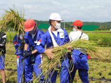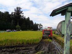 ずっと延期になっていた稲刈りを今日実施しました。全校児童出席で、みんなで稲刈りをしました。雨が続いていたので田んぼはぬかるんでいました。鎌で刈った後、稲刈り機でアグリサポートさんに刈っていただきました。苗の仕立てから田植え、水の調節、草刈、除草剤の散布などたくさんの仕事を多くの人に行っていただきました。感謝でいっぱいです。子どもたちが書いた作文の中にも「様々な人が携わって米ができているのだな。協力の大切さや米があるありがたさが伝わってくる稲刈りでした。」という感想が入っていました。本当に感謝です。