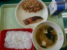 昨日の給食は和食でした。献立:ご飯・牛乳・切り干し大根・シイラ照り焼き・味噌汁