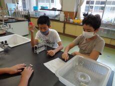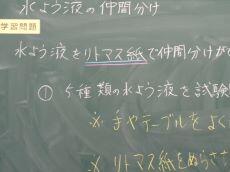 6年生理科の授業の様子です。水溶液の仲間分けをリトマス紙を使って調べていました。