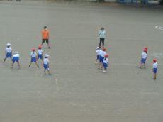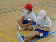 1・2年生の体育はケンケンパー遊びを行っていました。1年生は片足でケンケンは、両足で跳んでしまい、何度もやり直して挑戦していました。