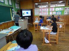1年生の国語の学習です。「うみのかくれんぼ」という説明文の読み取りを学習していました。はまぐりが砂の中に足を使って隠れる様子を教科書の挿絵だけでなく、動画を見て確認しました。足が出てきたり、砂の中に隠れたりするはまぐりの様子を子どもたちはじっと見つめていました。はまぐりが砂の中に隠れる様子がよくわかりました。