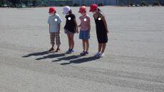 3年生は国語の教材「ちいちゃんのかげおくり」に出てくる「影送り」をやっています。今日は影送りをするのにとてもいい天気です。