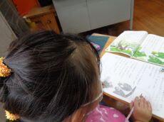 教科書の教材に合わせて、共通する内容の絵本や図鑑を集めて教室に置いています。楽しそうな本ばかりです。