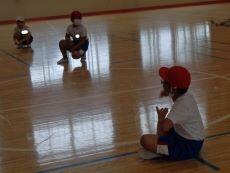 1・2年生の体育はケンケンパー遊びを行っていました。1年生は片足でケンケンは、両足で跳んでしまい、何度もやり直して挑戦していました。