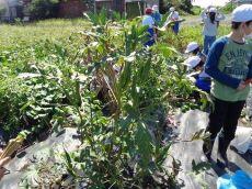 3・4年生が野菜の収穫や畑の片づけ、サツマイモの試し掘りを行いました。