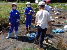 3・4年生が、サツマ掘りに備えて、切り取ったつるの後片付けをしました。本校の児童はよく働きます。感心します。きれいにしてくれました。