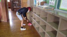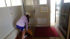 清掃の様子です。少ない人数で掃除しているので一人当たりの担当面積が広いです。一生懸命やらないときれいになりません。責任を持って頑張っています。