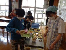 今日の給食は「お月見献立」です。のっぺい汁には里芋が入っています。