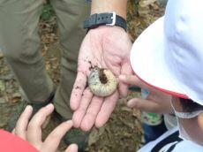 林の中を歩いたり、カブトムシの幼虫を触ったりしました。