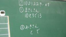 1年生の算数の授業です。10より大きい数の勉強です。ブロックを使って10のまとまりと3で13というように考えていました。