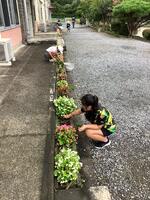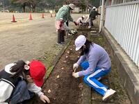 14名の地域の方と一緒に、ビオラの苗とチューリップの球根を植えました。