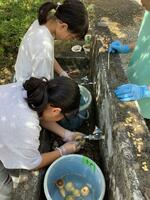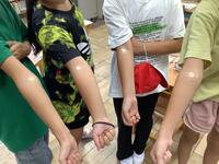 4年生は瓢箪を水につけ、中身を取る準備をしています。