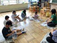 1、2年生の図工では学習ボランティアの先生のご協力で、大きな絵を描きました。