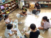 「すいすいぐるーり」と題し、絵筆を自由に動かして描いていきます。