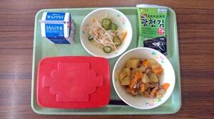 ☆ご飯・韓国のり・牛乳・じゃがいものピリ辛煮・切り干し大根のサラダ