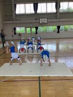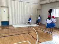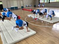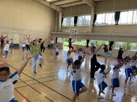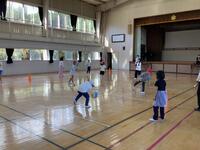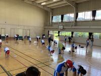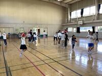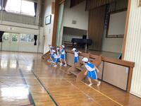 今日は冷たい雨が降ってきたため、持久走の練習は体育館で行いました。